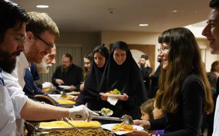 NOVEMBER: Faculty dish up Thanksgiving dinner for seminary students and their families, in a longstanding SVOTS tradition.