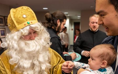 DECEMBER: Seminary children gathered at the Metropolitan Philip Auditorium for a special visit from St Nicholas (played by a seminarian)!