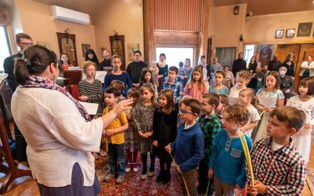 APRIL: Seminary children sang the Troparion for Palm Sunday in preparation for the festal procession.