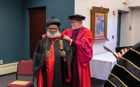 SEPTEMBER: SVOTS hosted a special academic convocation Friday, September 23, 2022, to honor His Holiness, Baselios Marthoma Mathews III, the primate of the Malankara Orthodox Syrian Church (MOSC) of India, with degree of Doctor of Divinity, honoris causa.