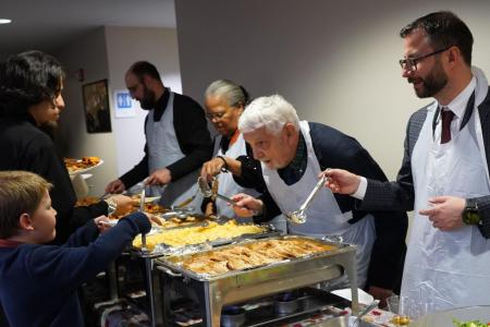 NOVEMBER: Faculty served Thanksgiving dinner for seminary students and their families, in a longstanding SVOTS tradition.