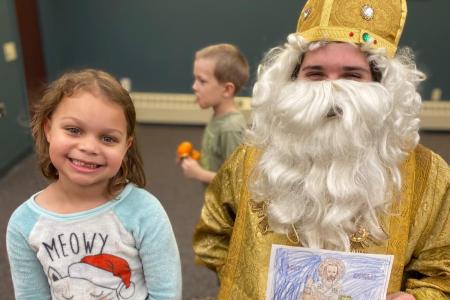 DECEMBER: Seminary children gathered at the Metropolitan Philip Auditorium for a special visit from St Nicholas (played by a seminarian), and were thrilled to receive generous gifts from local parishes, organized by the Fellowship of Orthodox Christians in America (FOCA). Seminary families also enjoyed receiving sets of Christmas pajamas from the kind parishioners of St Anthony Orthodox Church in Bergenfield, NJ.