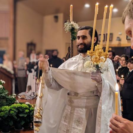 MAY: This is the day which the Lord has made! Let us rejoice and be glad in it! The Rev. Nikoloz Skhulukhia (M.A. ‘25) censes the congregation at the Paschal Divine Liturgy in Three Hierarchs Chapel.