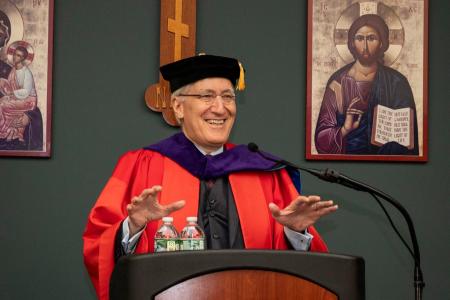 MAY: The Commencement Address was given by Dr Robert P. George, who was also awarded a Doctor of Humane Letters, honoris causa, in recognition of his faithful and dedicated philanthropic service over many years within the Church. Dr George and another distinguished guest, The Very Rev. Dr Patrick Henry Reardon, each received honorary degrees during the ceremony: the degrees of Doctor of Canon Law and Doctor of Divinity, honoris causa, respectively.