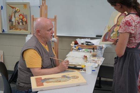 JUNE: This June the Institute of Sacred Arts (ISA) brought back world-renowned iconographer Dr George Kordis to St Vladimir’s Seminary. His icon-painting school, Writing the Light, offered several days of workshops on campus, from June 16–20. Twenty-eight students participated in the workshops. Kordis’ stay at the seminary culminated in a public conversation with ISA Director Dr Peter Bouteneff on the role of the sacred arts in church and society. (Hear that discussion in its entirety through ISA’s Luminous Podcast.)