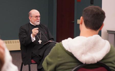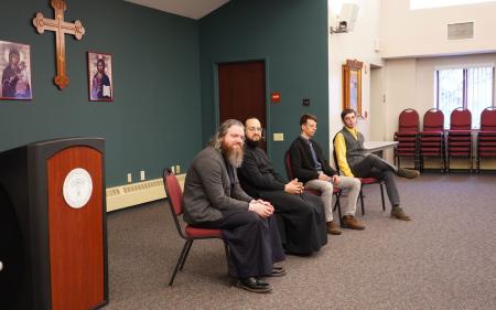 Seminary President, the Very Rev. Dr Chad Hatfield followed the seminarians with a presentation of his own, giving the youth group a brief history of Orthodox seminary education in America and explaining the developments that brought St Vladimir’s Seminary into being. Fr Chad took questions from the students and encouraged all, including the young women, to consider a future education at the seminary. Fr Nicholas also shared many reminiscences about his time as a student and an SVS Press Bookstore employee in the 1980s, including fond memories of former Dean of Students, the Very Rev. Paul Lazor.