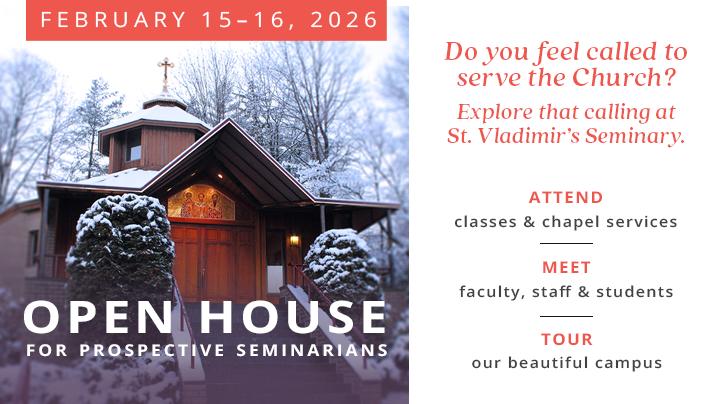 If you feel called to ministry in the Church, are interested in broadening your understanding and experience of the Orthodox Christian Faith, are curious about what seminary life is like, or are planning to apply for the Fall 2026 Semester, then please join us on campus at the St. Vladimir’s Seminary Winter Admissions Open House on February 15-16, 2026.