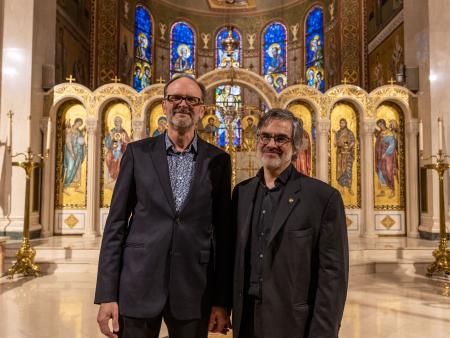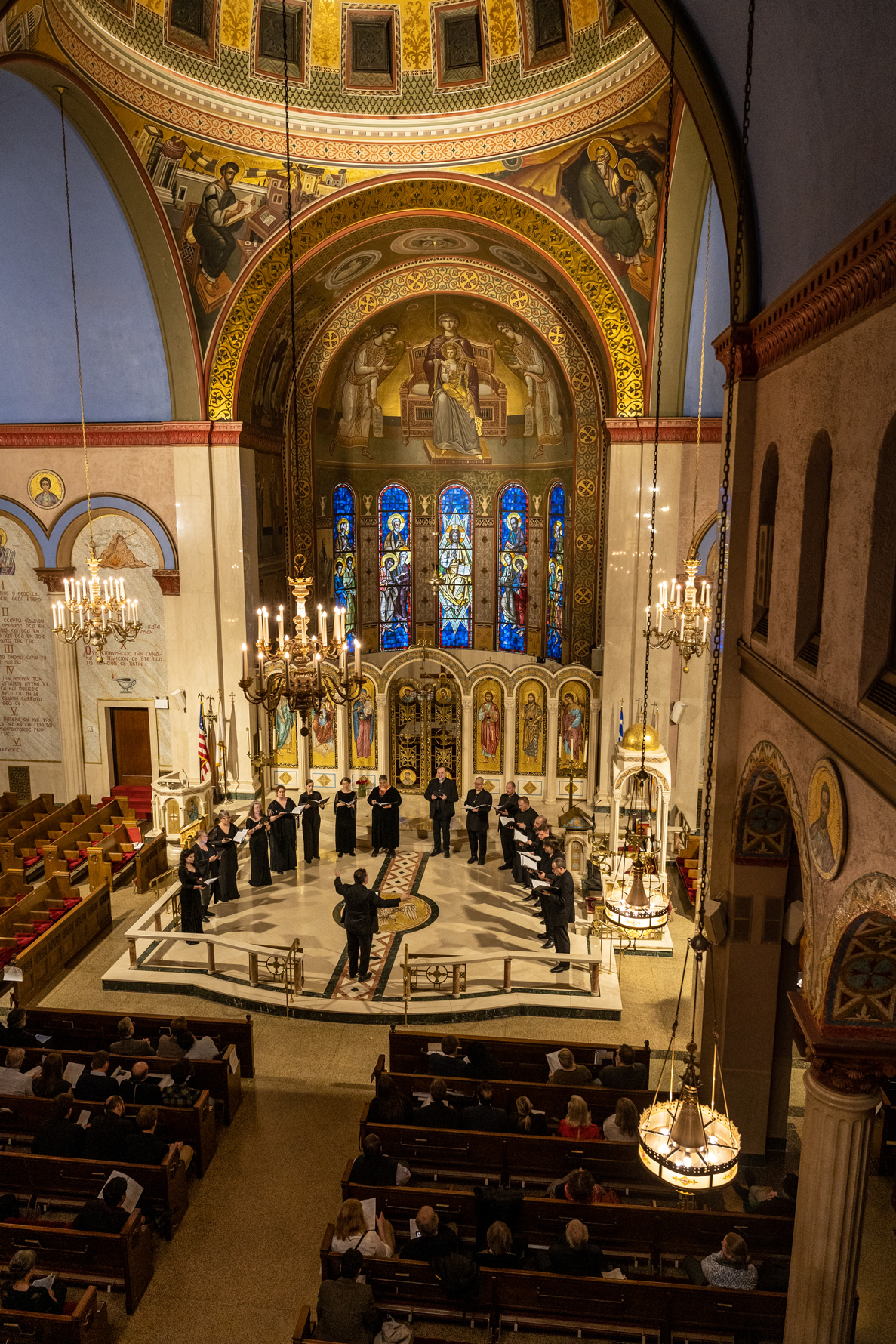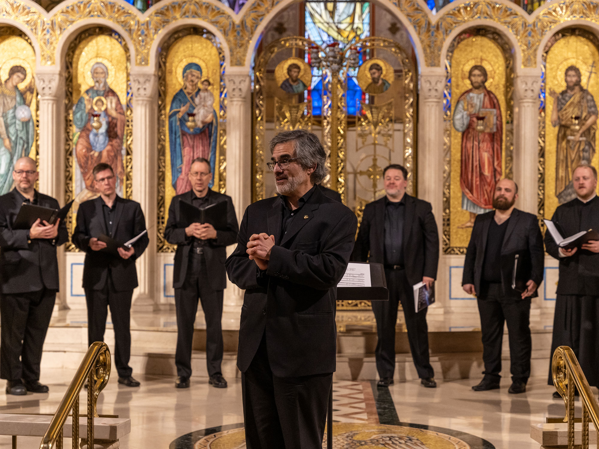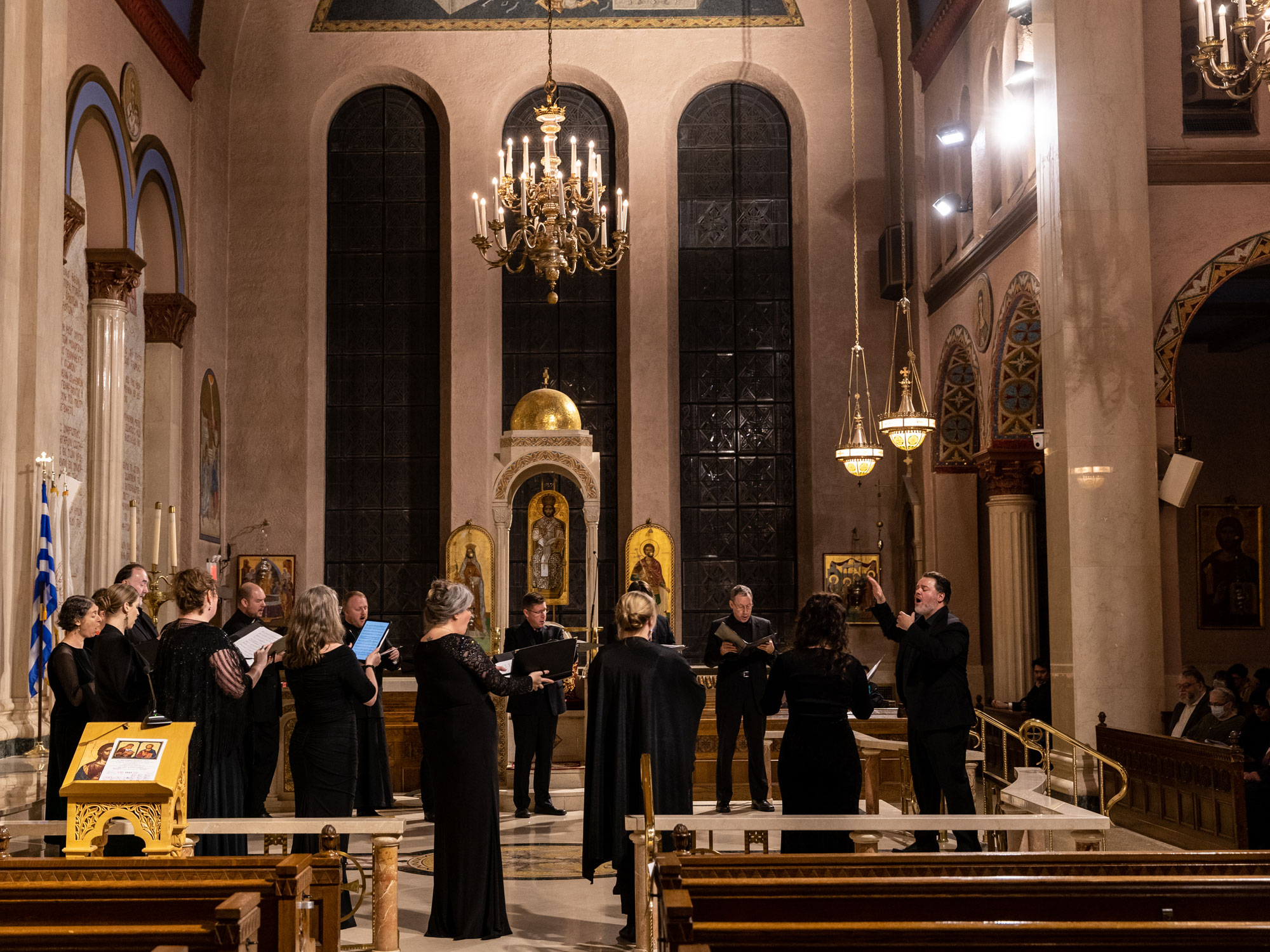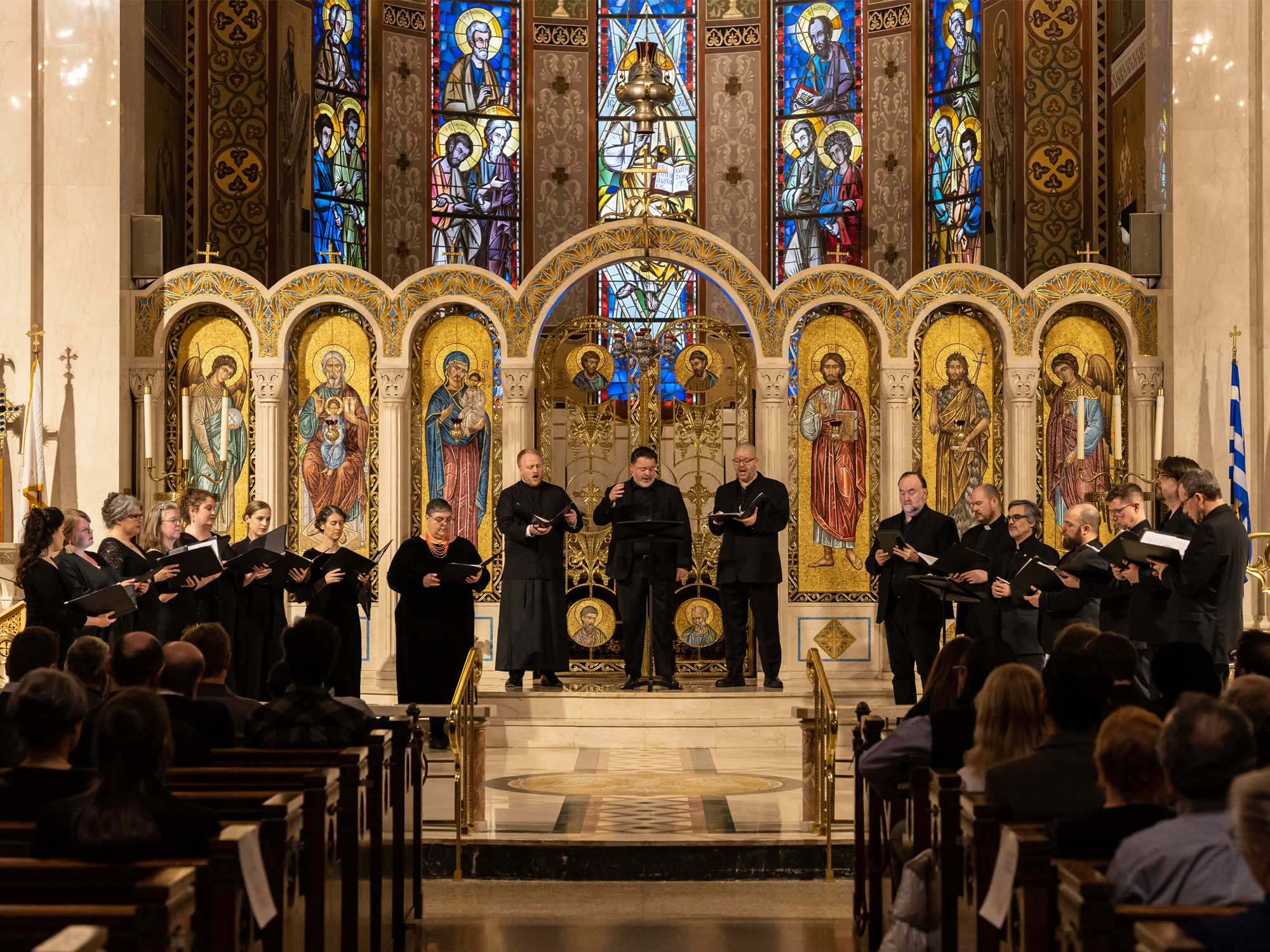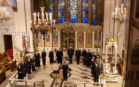 The concert program, entitled The Byzantine Choral Inheritance, guided the listener through the historical traditions of Byzantine chant to contemporary choral works inspired by traditional motifs. The concert opened with works in Greek from medieval Constantinople, followed by liturgical works by twentieth-century Greek American composers such as Tikey Zes, Theodore Bogdanos, and Frank Desby. The second half featured Heaven and Earth: A Song of Creation, a setting of Psalm 103, in which six composers: Tikey Zes, +Richard Toensing, GRAMMY-nominee Kurt Sander, Alexander Khalil, John Michael Boyer, and Matthew Arndt, each set a portion of the Psalm, creating a seamless tapestry.