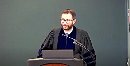 Dr Ionuț-Alexandru Tudorie, opening the Mid-Year Commencement ceremony and introducing the Schmemann Lecture speaker, Dr Henry Maguire