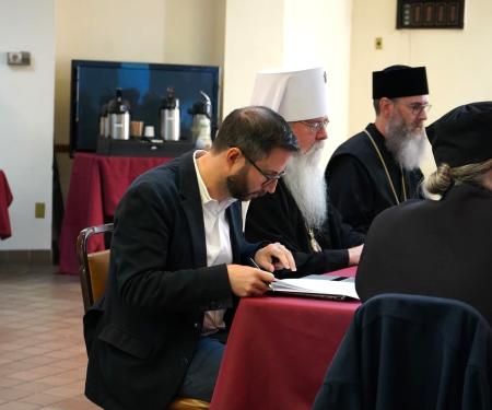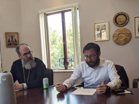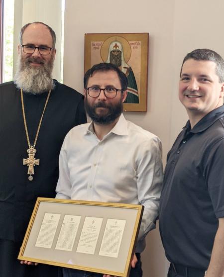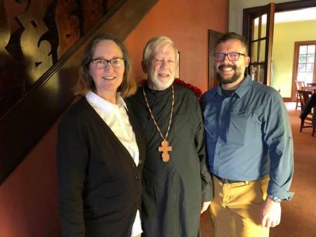 Dr Tudorie with Archimandrite Jeremy Davis, SVOTS Board Executive Chair, and Jeff Hoff, Trustee and Transition Committee Chair