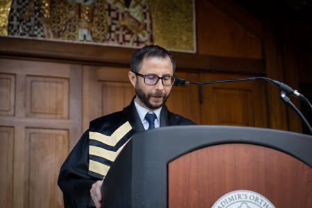 Dr Ionuț-Alexandru Tudorie, opening the Mid-Year Commencement ceremony and introducing the Schmemann Lecture speaker, Dr Henry Maguire
