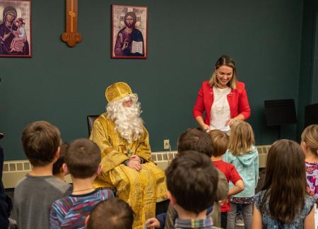 Dr Tudorie’s wife, Denisa, hosting the annual St Nicholas Day celebration in 2023