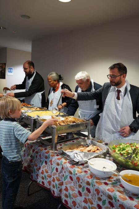 Dr Tudorie fosters the longstanding SVOTS tradition for its annual Thanksgiving dinner, when the faculty serve the students and their families a delicious holiday meal