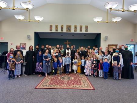 The “Byzantine Cohort”--Antiochian seminarians and their families after the last Divine Liturgy in the Metropolitan Philip Auditorium. April 2021.