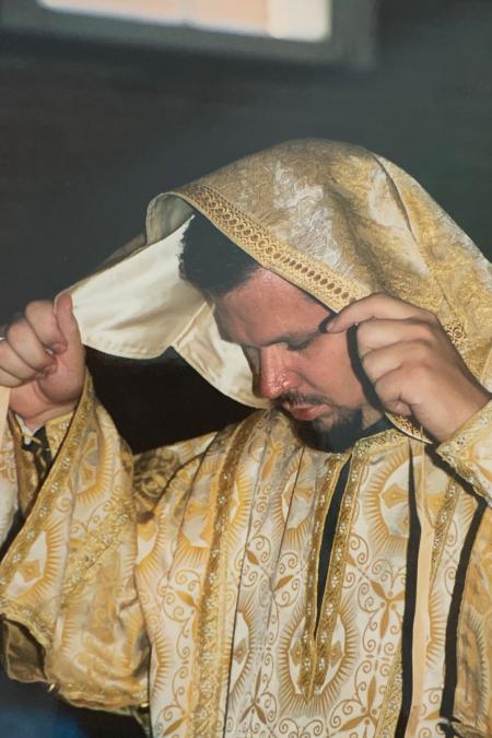 Fr Vasily was tonsured to the ecclesiastical rank of reader in the Orthodox Church in America at Three Hierarchs Chapel, St Vladimir’s Seminary, in 2002. In 2021, on the Feast of the Annunciation, he was ordained subdeacon, also at Three Hierarchs Chapel. On the Feast of the Exaltation of the Cross, September 14, 2021, again at the Seminary chapel, he was ordained to the holy diaconate through the hand of His Beatitude, Metropolitan Tikhon. Three years later, His Beatitude ordained Fr Vasily to the priesthood on the Feast of the Exaltation of the Cross, September 14, 2024, at Three Hierarchs Chapel. On January 17, 2025, he was tonsured to the small schema at St Tikhon of Zadonsk Monastery (South Canaan, PA) with the name Vasily.