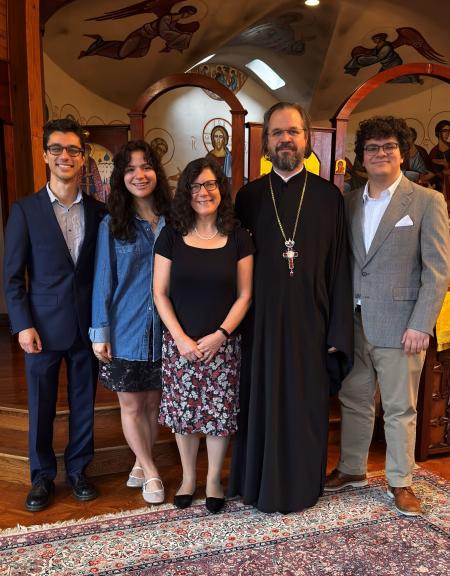 The Rentel family in Three Hierarchs Chapel: (from left) Dima, Maria, Mka Nancy, Fr Alexander, and Daniel