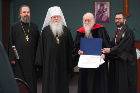 As the Fr. Alexander Schmemann Memorial Lecture got underway that evening, Dr. Tudorie announced a special honor for guest lecturer Fr. Andrew Louth: the bestowal of an honorary Doctor of Divinity degree from St. Vladimir’s Seminary.
