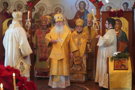 “The grace and peace of these three great saints is multiplied twofold through the presence of the venerable hierarchs and brothers who join me, six in number, for our concelebration today…”