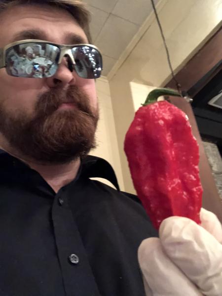 Enjoying the fruits of his labors in the seminary garden