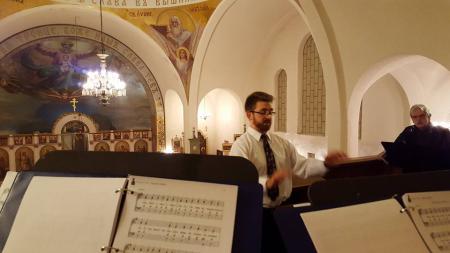 Directing the choir at Sts Peter and Paul Orthodox Church, Buffalo, NY, Spring 2016