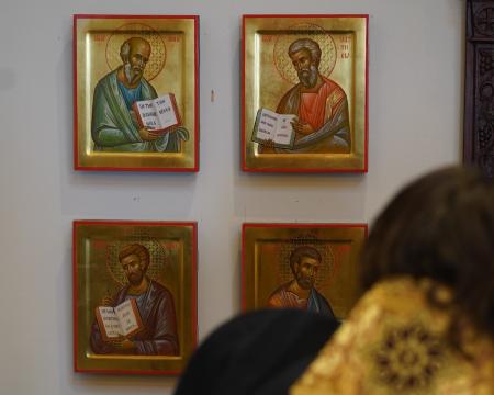Following Divine Liturgy on Saturday, Bishop Vasily blessed icons of the Holy Four Evangelists newly adorning the Chapel walls. The four icons are the result of an incredibly generous gift from Matushka Natasha Lazor in memory of her husband, the Very Rev. Paul Lazor (June 28, 1939–May 9, 2020).