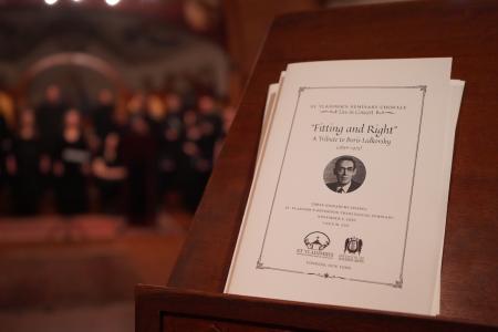 The St. Vladimir’s Seminary Chorale sang before a packed audience at Three Hierarchs Chapel and hundreds of online viewers Thursday evening, November 6, in memory of eminent Orthodox Church musician Boris Ledkovsky (1894–1975).