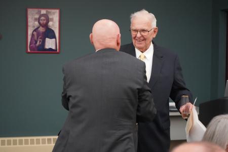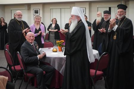 A memorable celebration took place on campus as Theodore (Ted) Bazil was honored for his tremendous contributions to St. Vladimir’s Seminary and the Church. On Thursday, October 30, His Beatitude Metropolitan Tikhon bestowed the Primatial Gramota upon Ted Bazil in recognition of his more than fifty years of faithful service.
