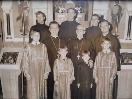 Ted during his seminary years (back row, middle) with members of his family, including cousins Michael, Leonard, Mark, Philip, the future Fr. Thomas, and Matthew; and Frs. Vladimir, Gregory, and Igor.