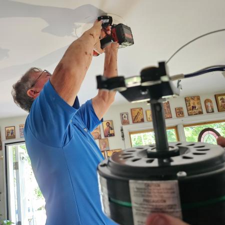 So this July—with temps in the upper 80s and 90s—Barrett traveled to campus, put on his working boots, and spent several days helping Plant Manager Rafael Rivera install ceiling fans, dehumidifier switches, and making other improvements in seminarian apartments and dormitories. Barrett donated the labor cost and arranged for the fans to be obtained at a lower price.