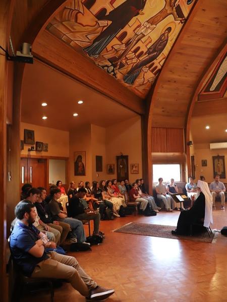 Participants meet with His Beatitude Metropolitan Tikhon at Three Hierarchs Chapel. (Photo: CrossRoad Institute)